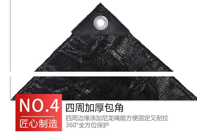 雙黑色PE防水篷布四周加厚包角:四周邊緣添加尼龍繩能方便固定,又耐拉,360度全方位保護(hù)。