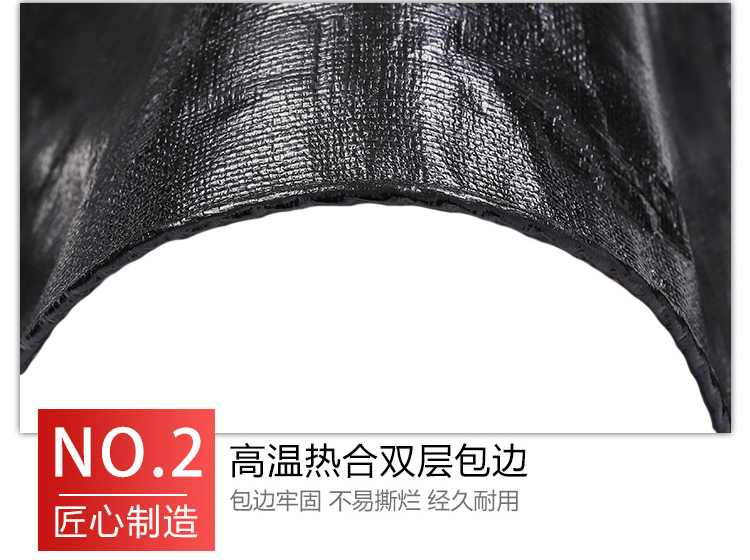 雙黑色PE防水篷布高溫?zé)岷想p層包邊:包邊牢固,不易撕爛,經(jīng)久耐用。